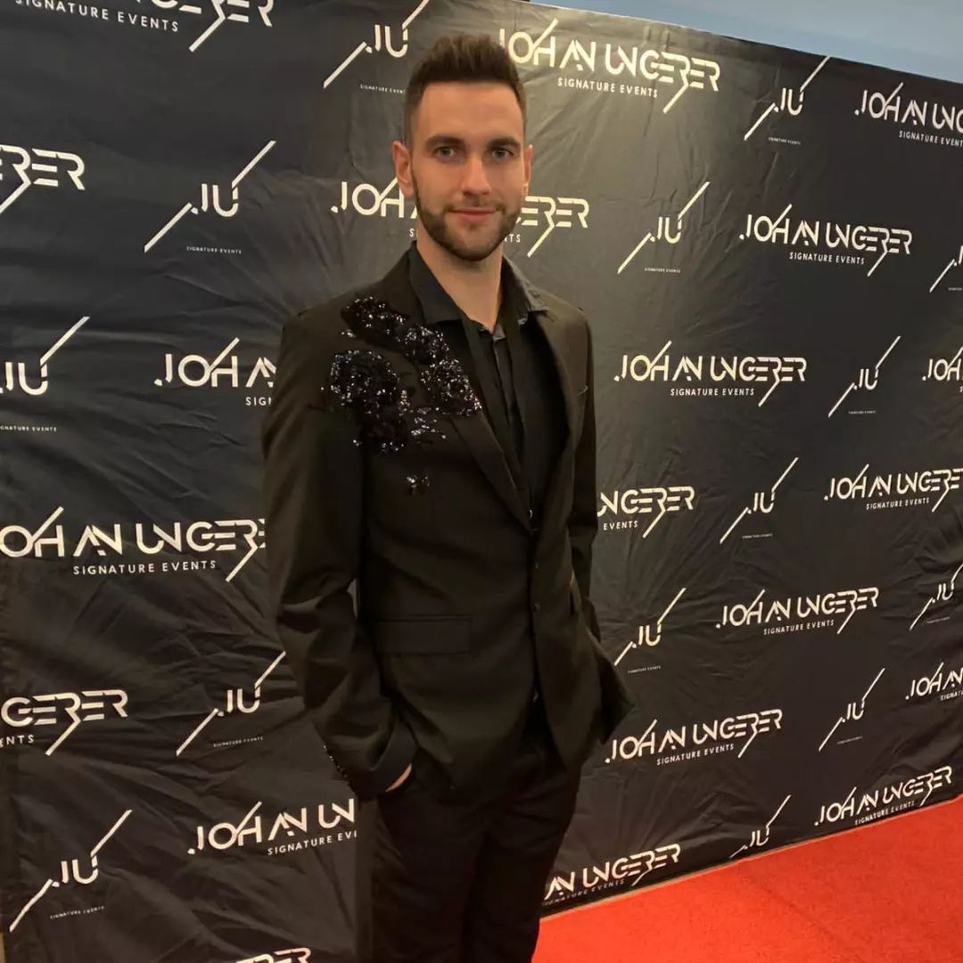 (Tiaan wearing a custom Green Tailor suit, which is just a regular black suit with some glam! Which was later removed so it’s back to a regular black suit, prolonging it’s use)